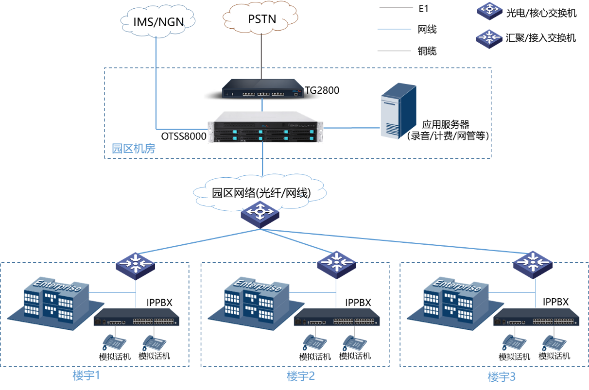 随着光纤的大规模应用普及,VOIP语音组网模式已成为园区语音系统的主要解决方案。